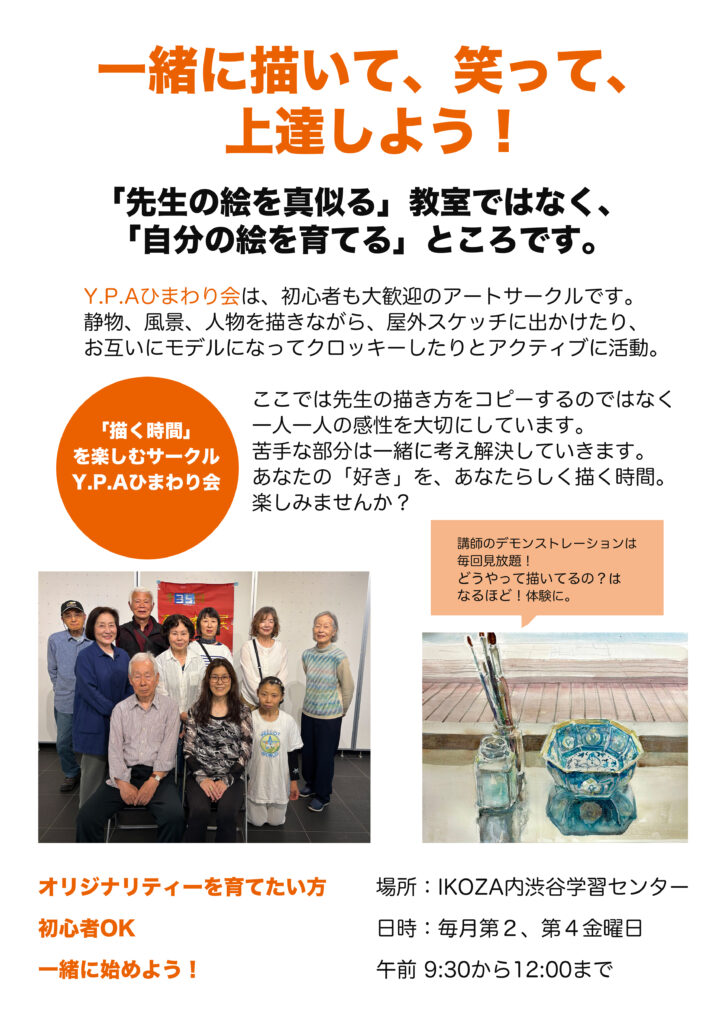 高座渋谷学習センターで、水彩/パステル教室、YPAひまわり会
