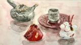 夏野菜など、水彩で直に描く